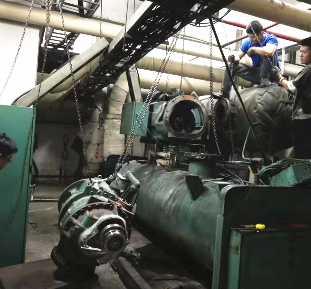 長安100匹螺桿冷水機保養(yǎng)現(xiàn)場